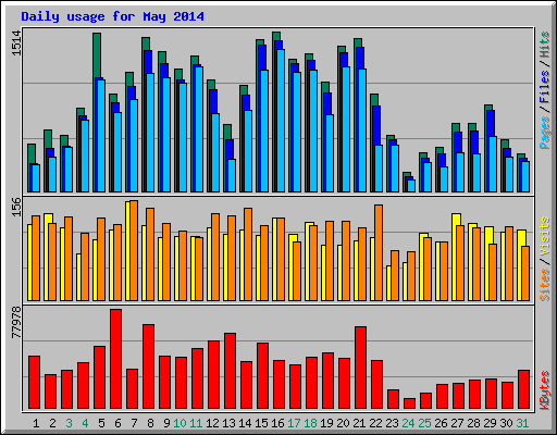 | Day | Hits | Files | Pages | Visits | Sites | KBytes | ||||||
