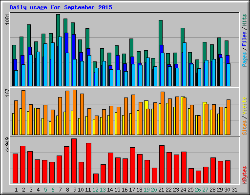 | Day | Hits | Files | Pages | Visits | Sites | KBytes | ||||||